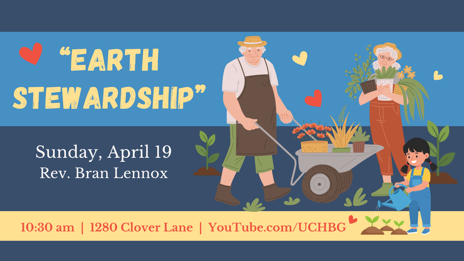 Caring for our community also means caring for the land with which we live. Let’s celebrate Earth Day with a re-commitment to our environment! The UCH Choir will perform.
